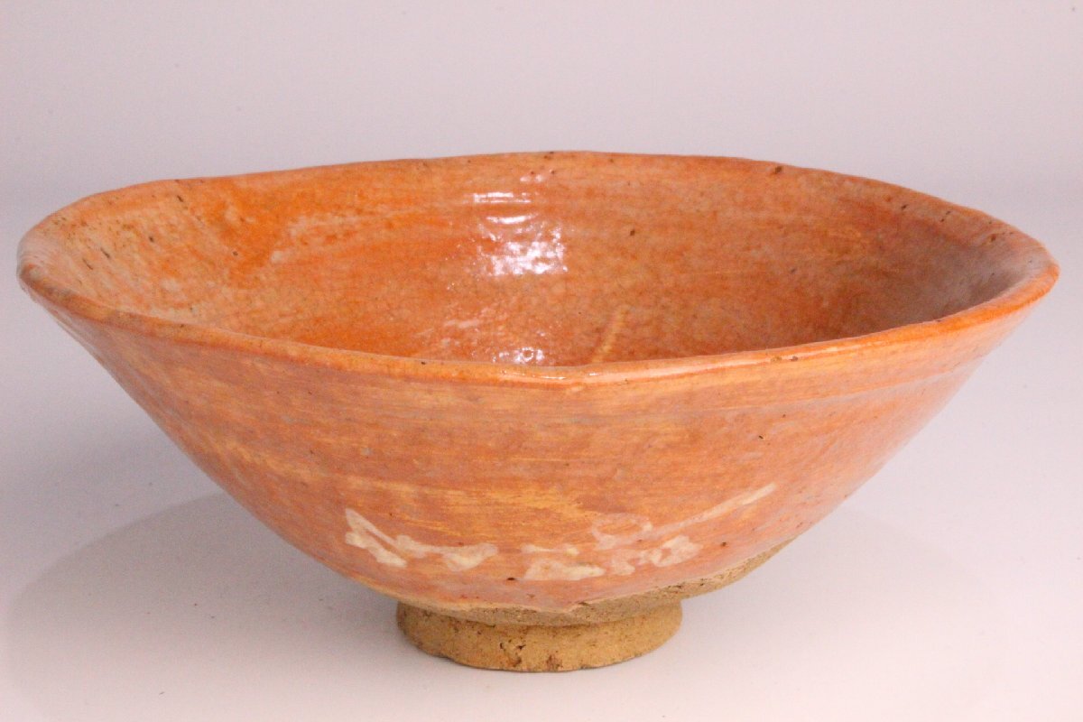 - 「狸庵RS」 瀬戸 豊楽焼 6代 豊助 作 五徳庵 書付 銘: 名残 赤茶碗「 極箱」/ なごり茶事 平茶碗 パリ万博 ☆本物保障☆