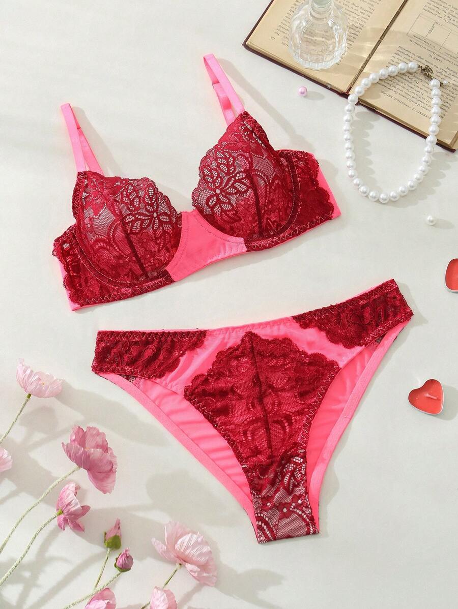 - インティメート ブラジャー ショーツ セット レディース コントラストレース シンプルなデイリーブラ&ショーツ下着セット セクシー