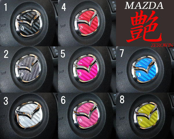 > マツダ ステアリング エンブレムシート カーボン調 SDH-M01 樹脂盛立体3D ハンドル ZEROWIN MAZDA 簡単取付