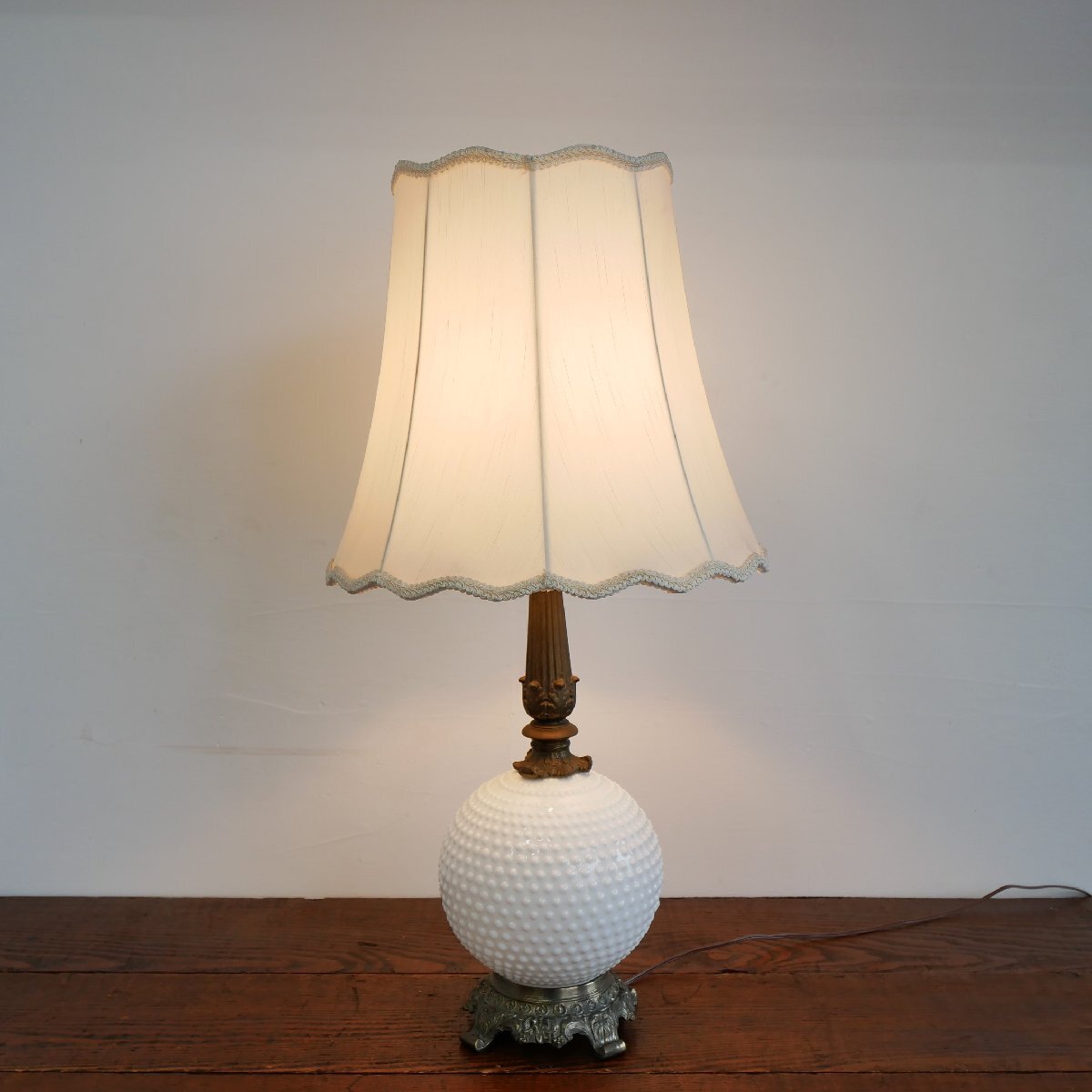 - #4866 アメリカ 1960s-1970s ヴィンテージ テーブルランプ 照明 ホブネイル ファブリックシェード