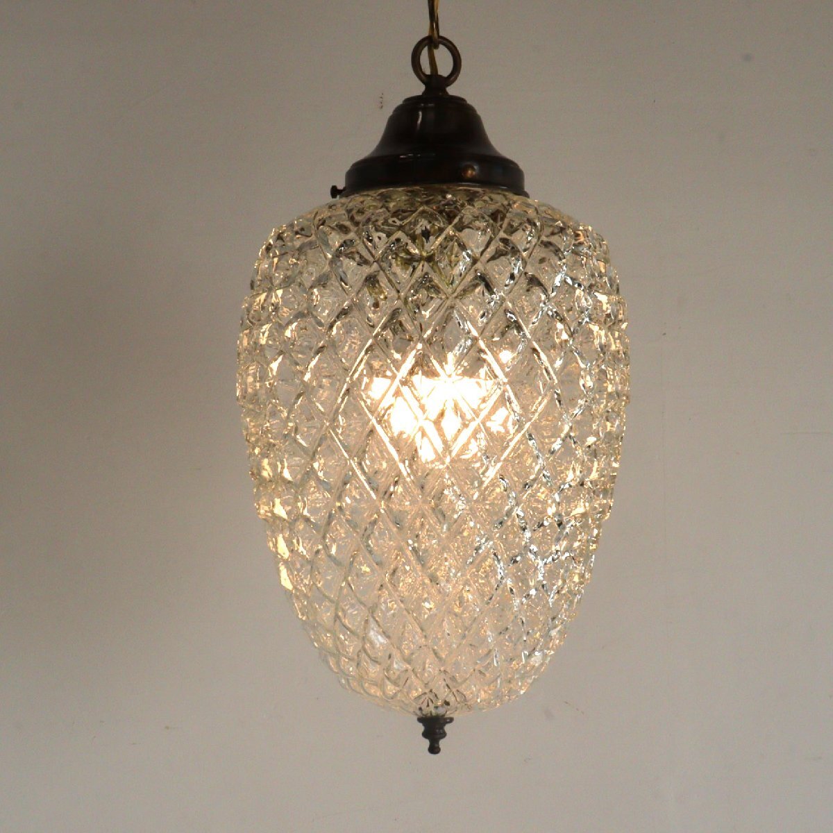 - 70s ヴィンテージ カットガラス ペンダントランプ/アンティーク クリアガラス 吊り下げランプ カフェ 照明 シーリング#606-20-8-361