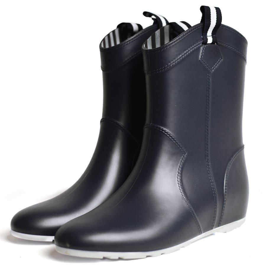 > 新品■24.5~25cm レディース 防水 ブーツ インヒール 防滑 レイン シューズ 長靴 雨 ミドル丈 ストライプ 婦人靴 スノー ウインター