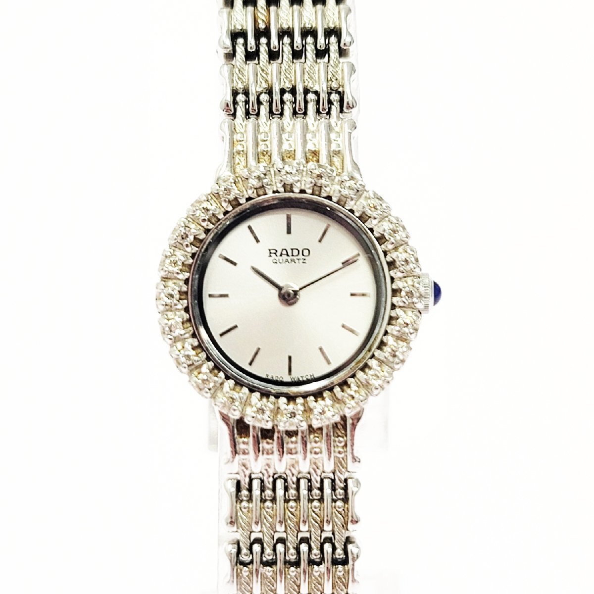 - 【1円スタート】【訳あり品】RADO ラドー 121.9536.2 ストーンベゼル SS シルバー文字盤 クオーツ レディース腕時計 510747