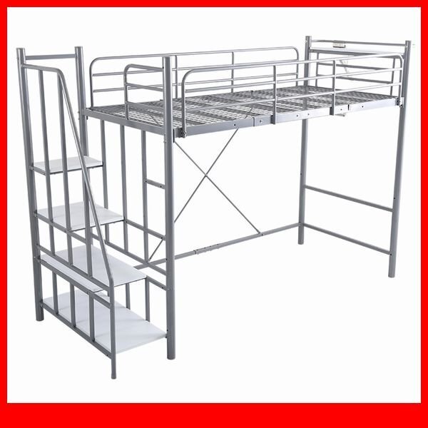 - ロフトベッド★新品/大人かわいいインテリア 階段付き パイプロフトベッド/2段階高さ調整 ハイ ミドル 宮 コンセント付/シルバー/a5