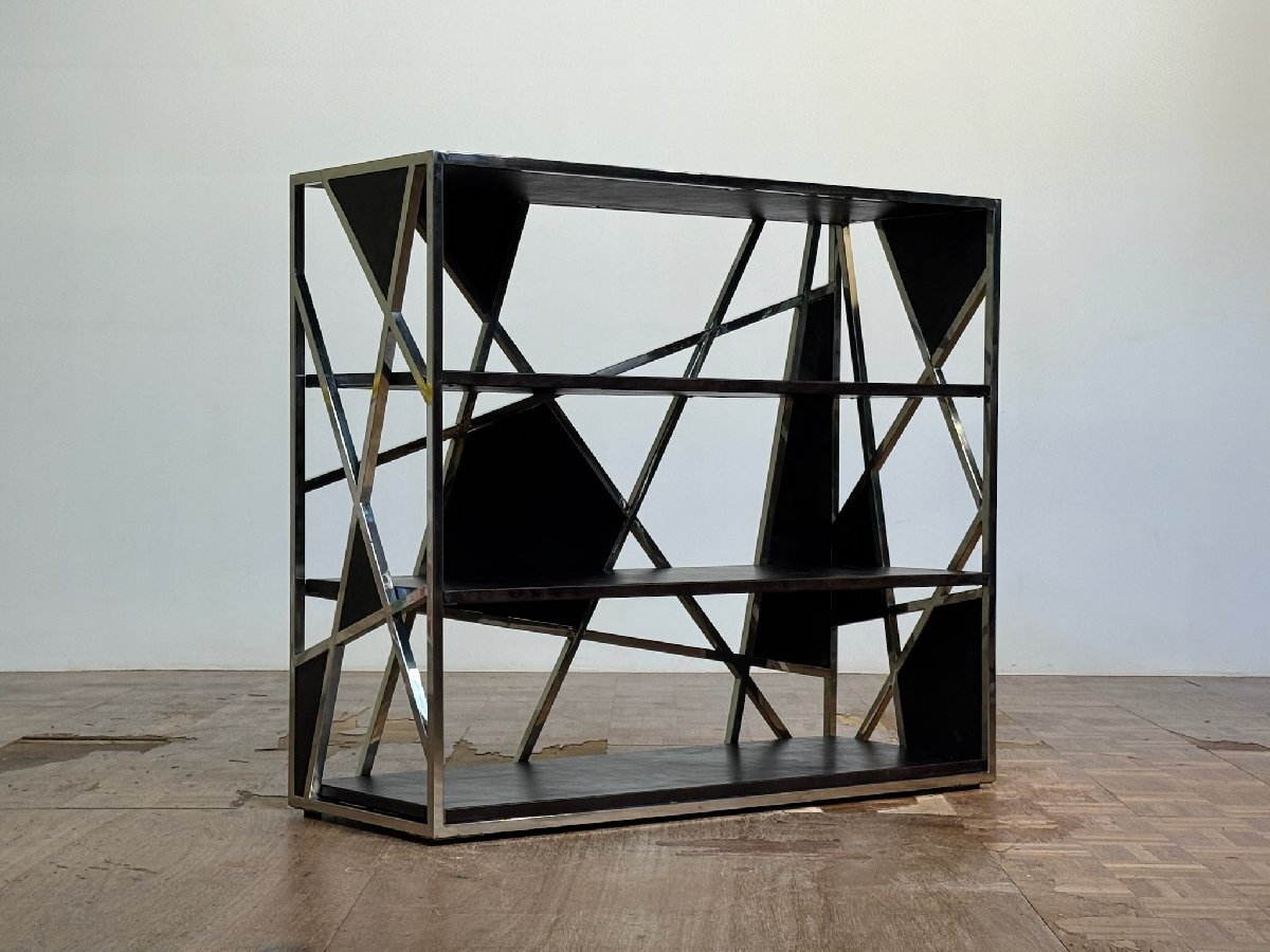 > -ts02r5|イギリス1980sヴィンテージ 総本革 ポストモダンレザーシルエットシェルフラック|ミノッティ モルテーニ 大塚家具 店舗什器