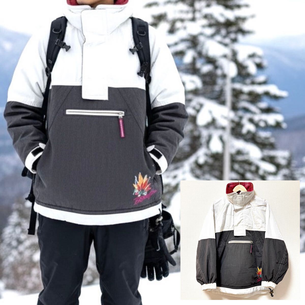 > 日本製◎ビッグシルエット◎【DESCENTE】デサント スノー ウェア プルオーバー アウター スキー スノーボード 白 黒 メンズ S /Y38240SS