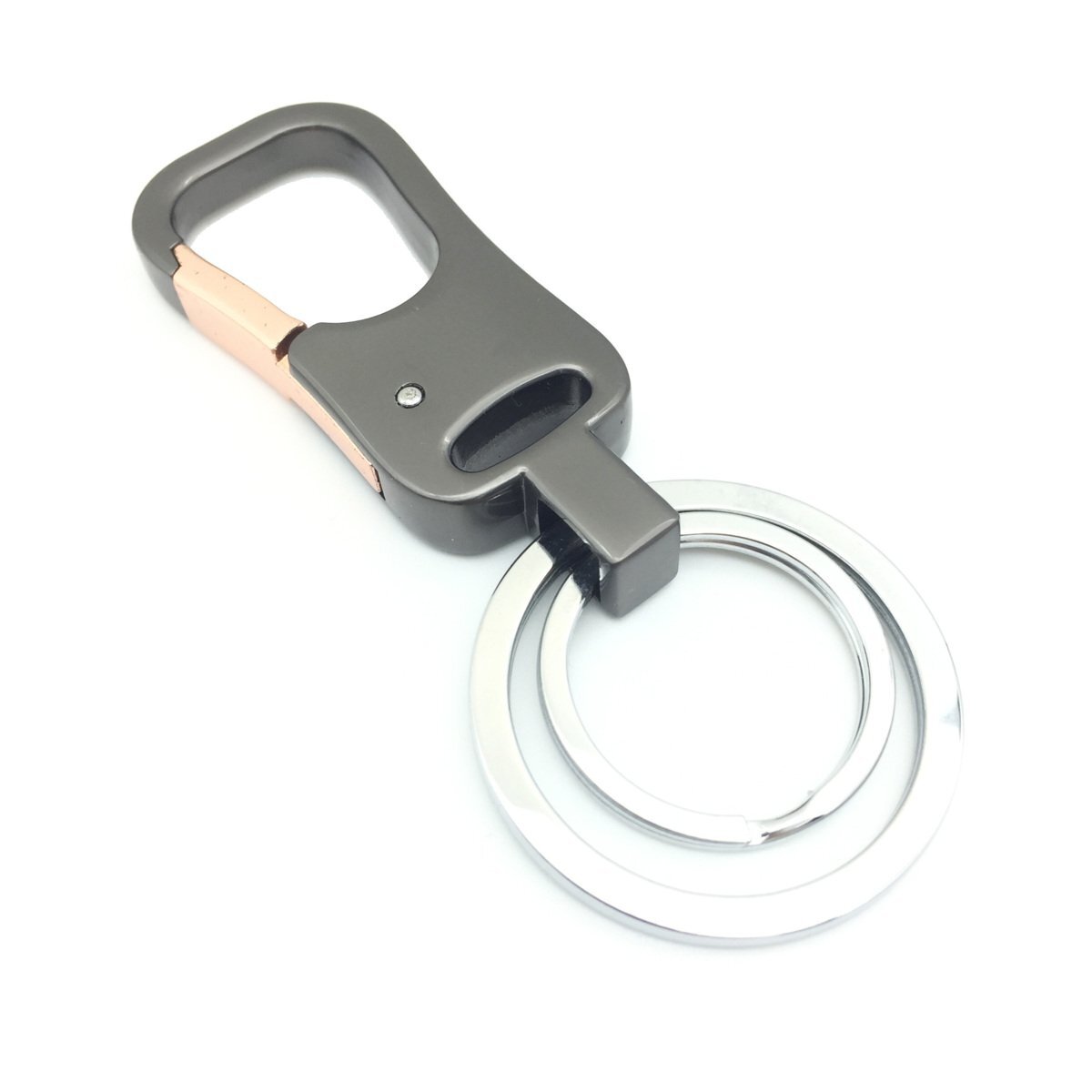 > ダブルリング キーホルダー カラビナ フック メンズ レディース シンプル デザイン メタリック ダークグレー ギフトボックス・化粧箱付き