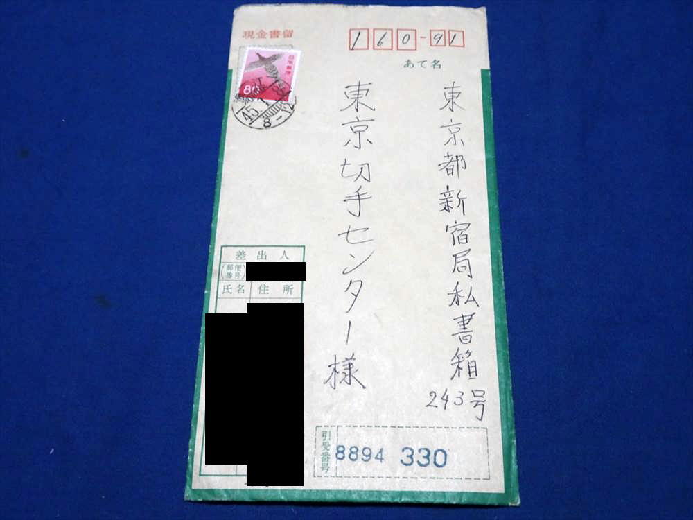 - U857 動植物国宝80円鳥単片貼 浪江45.1.8櫛型印押印現金書留実逓便(S45)
