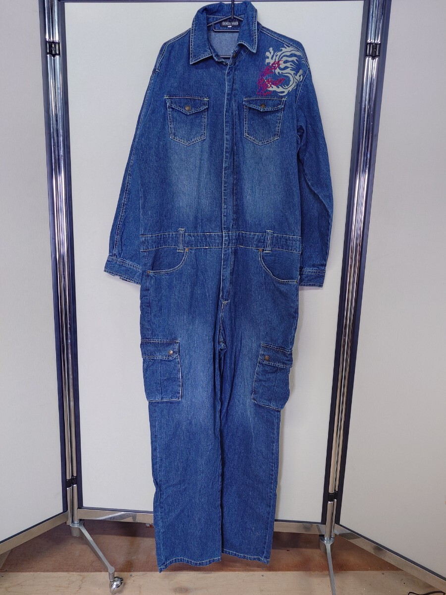 - ● AMORE PURO デニム ツナギ オールインワン サロペット オシャレ着 作業着 かっこかわいい 和柄 龍 メンズ LLサイズ 美品 ③