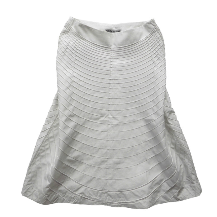 > イッセイミヤケ (ISSEY MIYAKE) ポリエステル プリーツ スカート ミディアム丈 2 ホワイト IM52FG516 ウェア(中古)