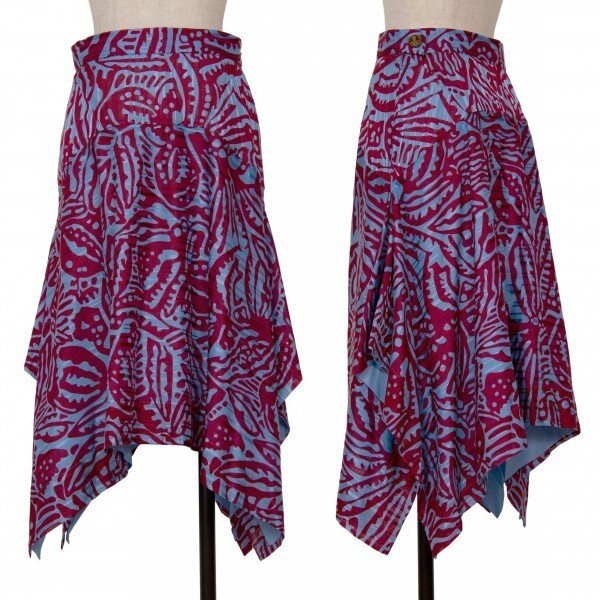 > ヴィヴィアンウエストウッド レッドレーベル フラワープリントストライプスクエアドレープスカート 水色赤2
