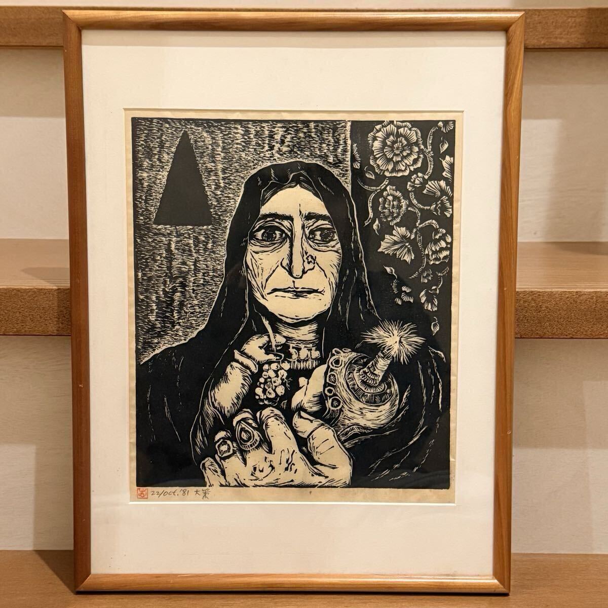 - *fufu* 真作保証 甲斐大策 「母と子」 木版画 直筆サイン スタンプサイン 1981年10月22日 父は甲斐巳八郎 アフガニスタン