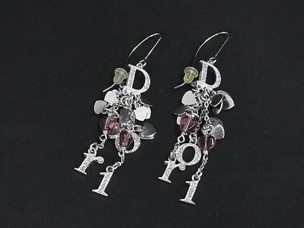 - 1円 ■美品■ ChristianDior クリスチャンディオール ラインストーン ハート ピアス アクセサリー レディース シルバー系 FP9061