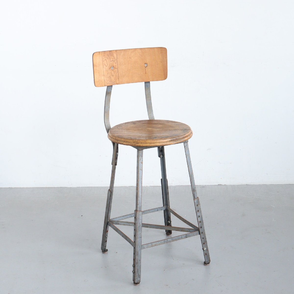 - ヴィンテージ インダストリアル スツール / アメリカ ファクトリーチェア USA WOOD 背もたれ付き メタル 椅子 鉄脚 #702-87-66-417