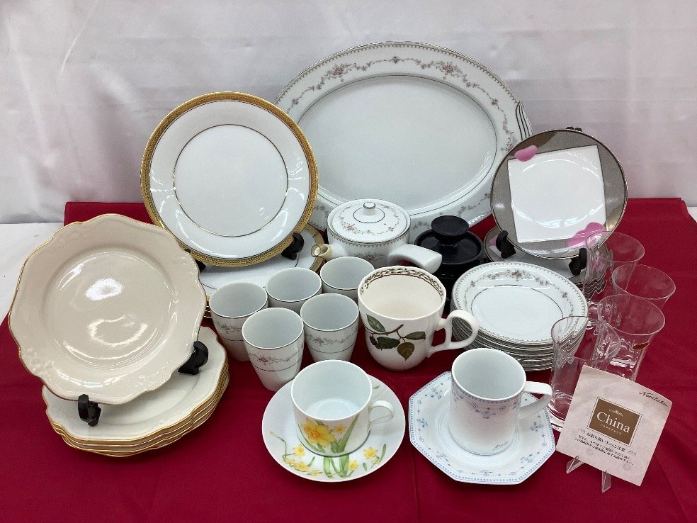 > ノリタケ 食器まとめ/プレート/プラター/グラス/ロイヤルオーチャード他 カケ等有/皿立ては備品/ACB 中古品
