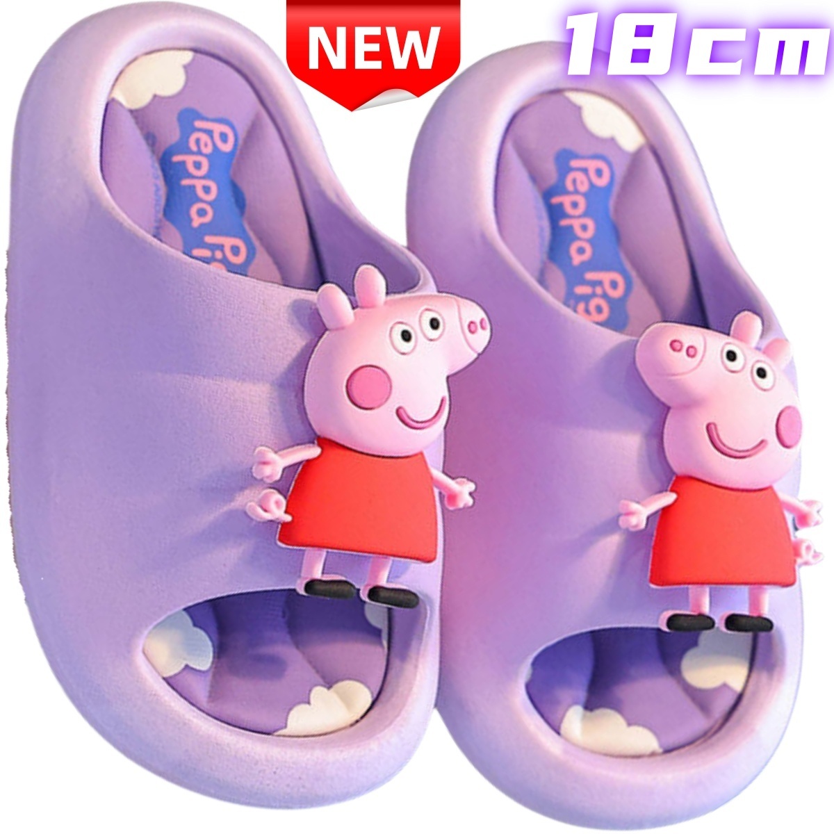 - [新品]ペッパピッグ キッズ スリッパ パープル 18cm 子供用 室内履き 軽量 かわいい 動物柄