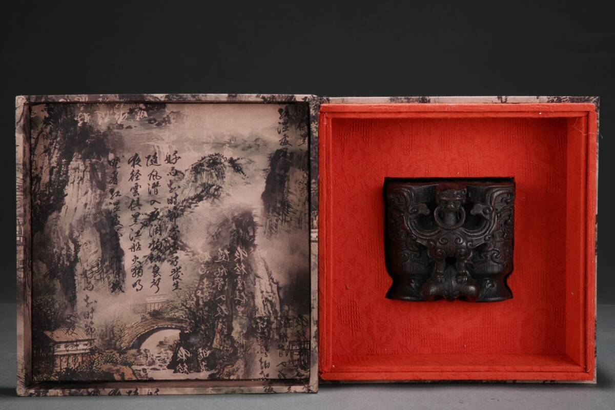- 旧蔵 牛角彫 爵杯 擺件 古擺件 古置物 中国古玩 骨董品 時代物 稀少唐物