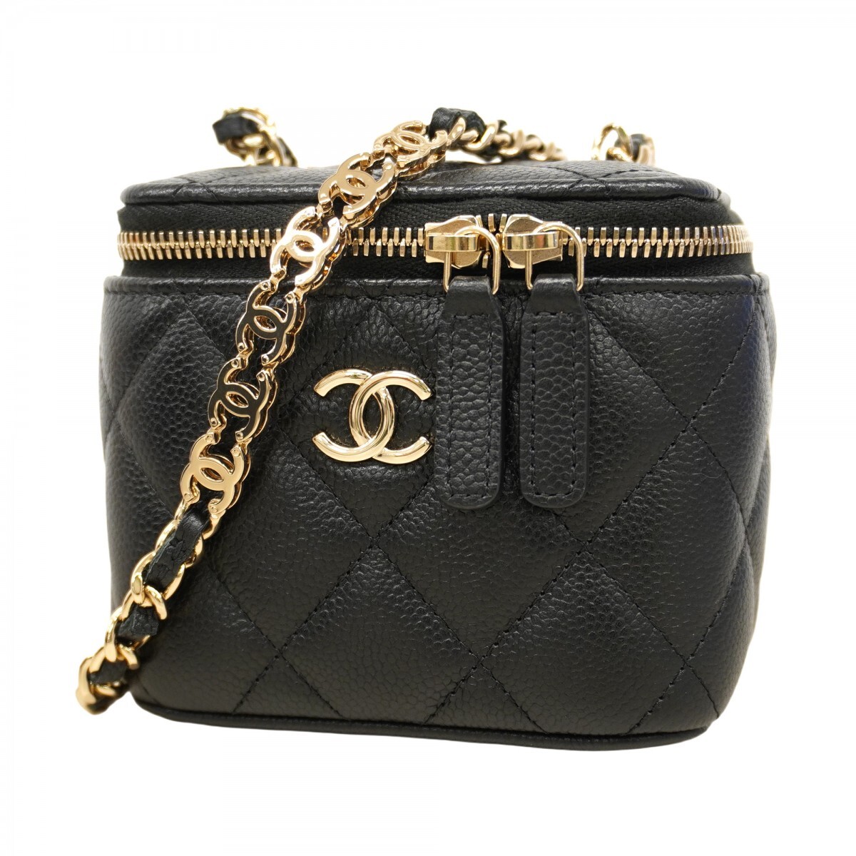 - ★SALE【5me6108-h】シャネル バニティバッグ マトラッセ チェーンショルダー キャビアスキン ブラック シャンパンゴールド金具