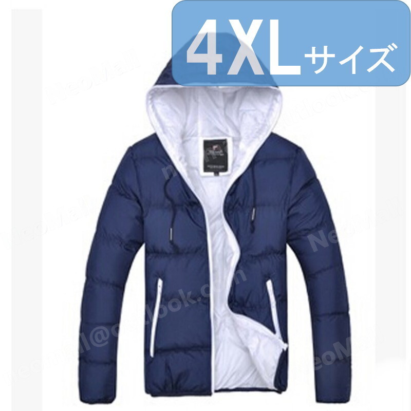 > フード付き メンズ ダウン 004 ネイビー×ホワイト 4XLサイズ 中綿ダウン 中綿ベスト キルティング アウター 防寒 秋冬 暖かい