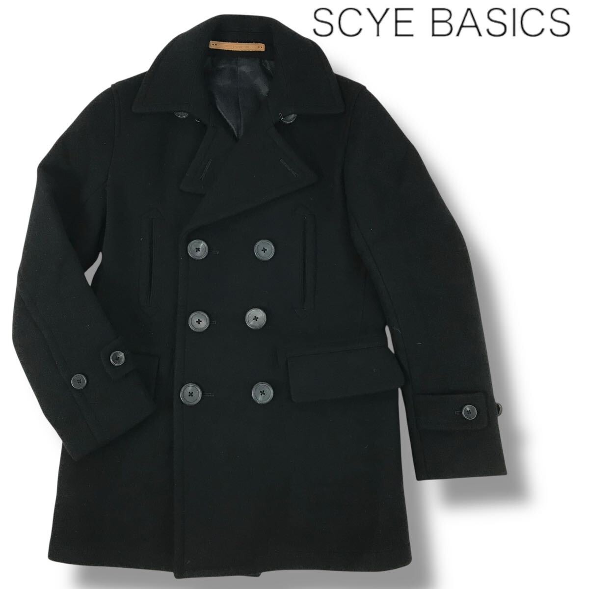 > e127 SCYE BASICS サイ ベーシック メルトンウール ピーコート アウター Pコート ブラック 38 日本製 毛100% レディース ジャケット