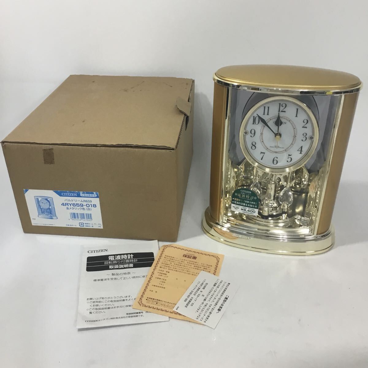 > 未使用 CITIZENパルドリームR659 4RY659-018 金メタリック色(白)全国自動受信 電波時計 シチズン 置時計 置き時計