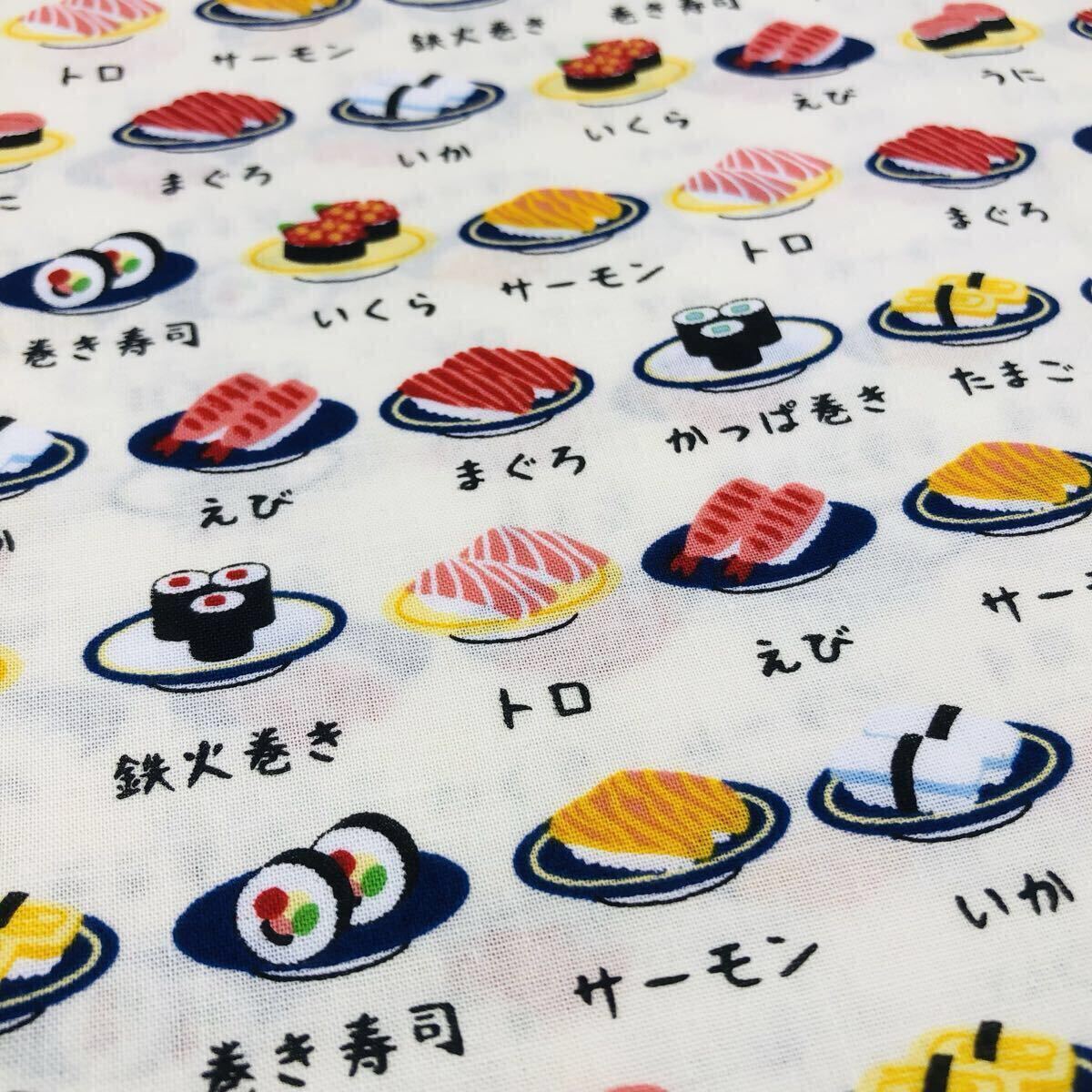 - はぎれ 50cm 日本製 スケア お寿司 コットン 生地 はぎれ コットン すし 108×50 生成り スケアー 和柄 寿司
