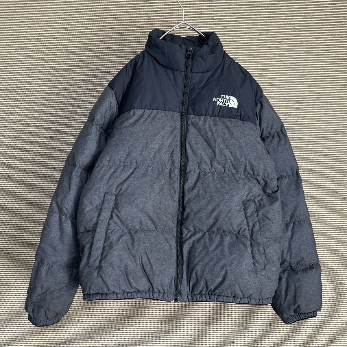 - ノースフェイス ダウンジャケット ダークグレー子供150 刺繍 キッズ 黒F2 古着 入手困難 激レア 希少 人気 ワンポイントロゴ