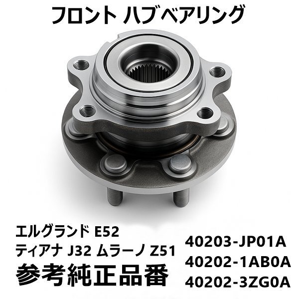 > 日産 エルグランド E52 TNE52 ティアナ J32 TNJ32 ムラーノ Z51 TZ51 TNZ51 フロント ハブベアリング ボルト付 左右共通 1個 40203-JP01A