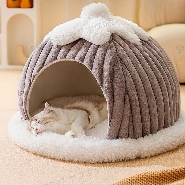 - 猫 犬 ベッド ふわふわ 暖か カボチャ形 キャット ペット用品 ペットハウス 滑り止め クッション 柔らかい 秋冬 グレー Sサイズ