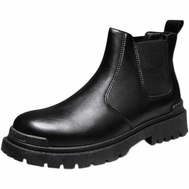 - サイドゴアブーツ メンズ チェルシー ブーツ ハイカット フェイクレザー靴 おしゃれ 人気 黒27cm
