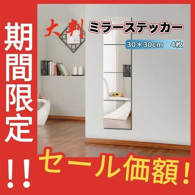 - 大判ミラー 全身鏡 貼り付け 割れない鏡 ステッカー 30cm 4枚セット