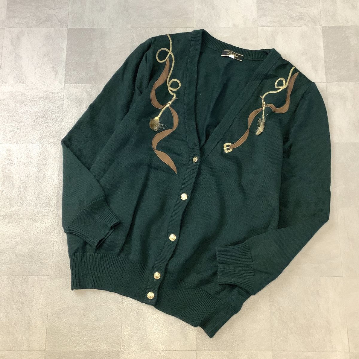 - Leilian レリアン デザイン ウールニット カーディガン レディース 大きいサイズ 13号 XL モスグリーン