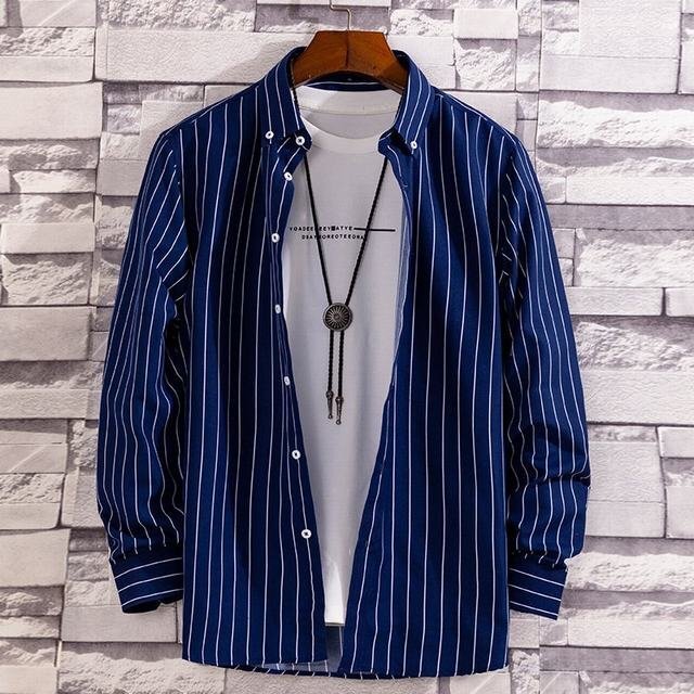 > メンズ長袖シャツ、カジュアルシャツ 春秋服 マルチストライプ シャツ トップス 上着 ビジネス カジュアルシャツN メンズ4XL
