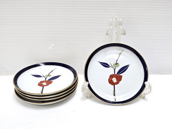 - 【未使用展示品】 香蘭社 椿柄 銘々皿 5枚セット ○YR-17493○