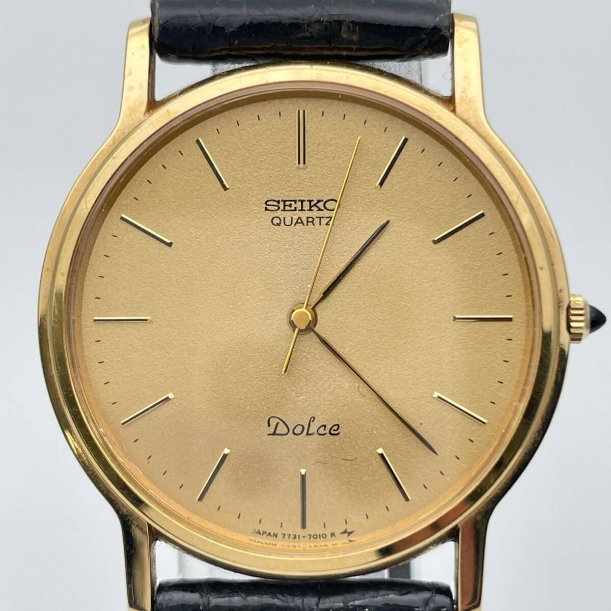 > セイコー ドルチェ 7731-7010 クォーツ ゴールド文字盤 ボーイズ 腕時計 稼働品 メンズ レディース SEIKO 中古 ◆2008