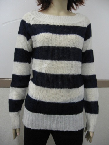 > 【KCM】kd-50-L■激安■【C.P.A】レディース ボートネック ボーダーアクリルニット サイズL ホワイト/ネイビー