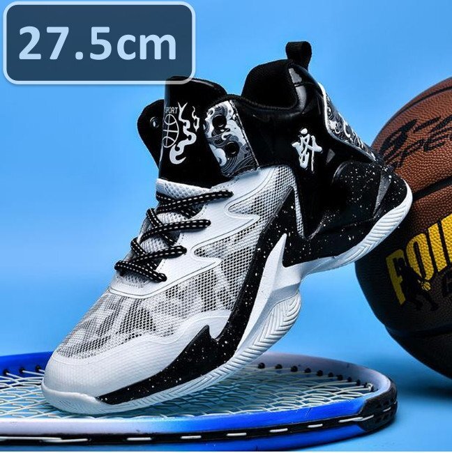 - メンズ スニーカー ブラック 27.5cm 靴 シューズ 防滑 バスケットシューズ 通勤 通学 旅行 【241】