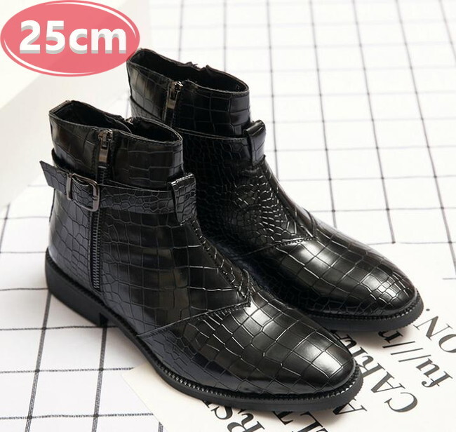 - ワニ柄 型押し メンズ ビジネス シューズ ブラック 25.0㎝ PUレザー 革靴 靴 カジュアル 屈曲性 通勤 軽量 インポート品【n158】