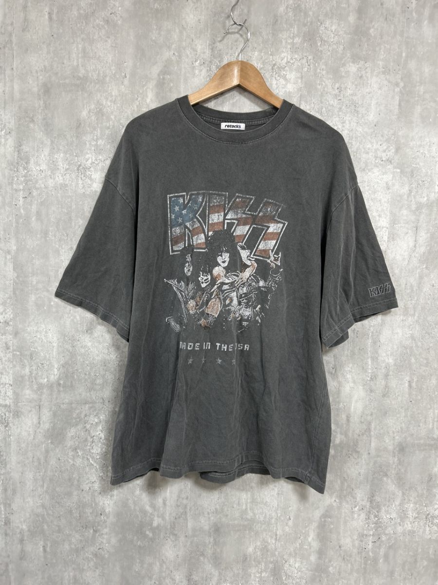 - ネコポスOK retock’s レトックス 半袖 ヴィンテージ加工 KISS プリントロゴ Tシャツ sizeL/グレー ■◆ メンズ