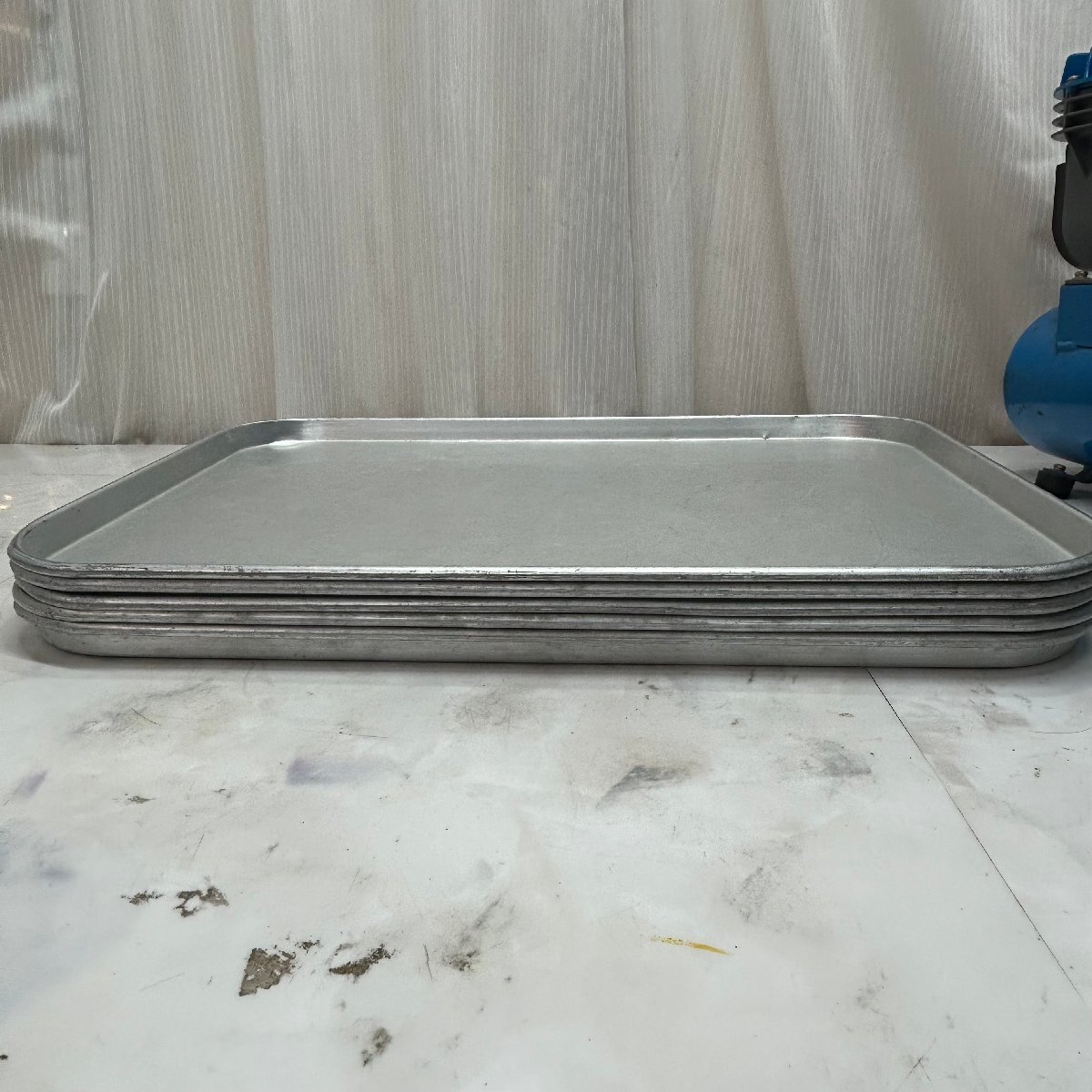 - ♪OG♪ 【ランダム出品】 トレイ アルミ製 幅約52.5cm 奥行約37.5cm 高さ約2cm 1セット5枚 3セット 業務用 まとめ売り 中古品 ♪A-251116