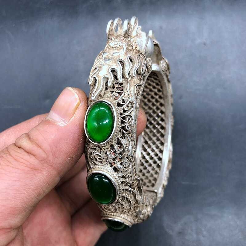 - 竜頭腕輪 中国 金属 チェーン 腕輪 透かし彫り 裝身具 護符 開運 風水 お守り 厄除け 装飾