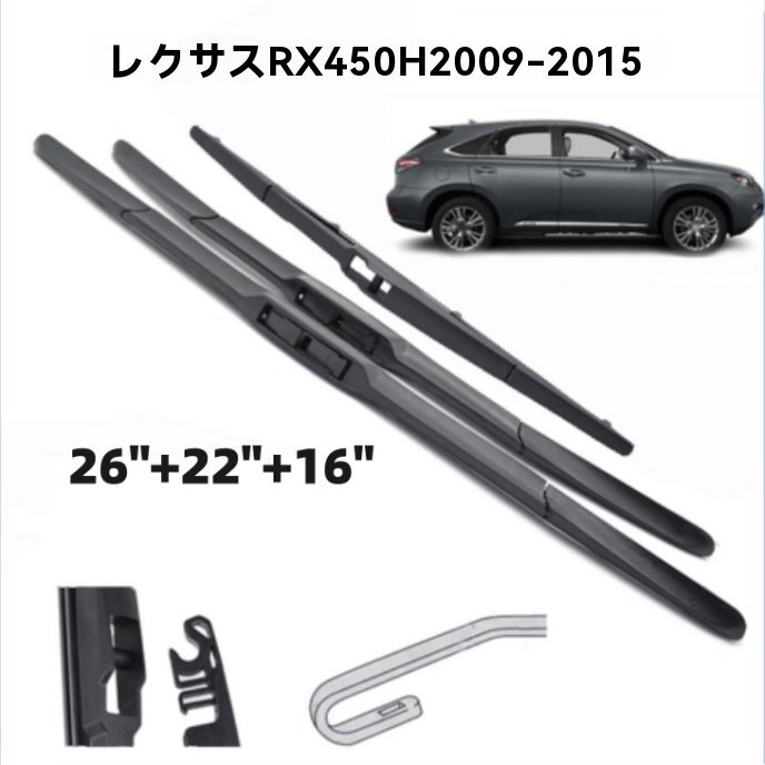 > 送料無料 レクサス RX450h RX350 AL10系 2009~2015対応 フロント+リア雨刷 ワイパーブレードセット 交換用