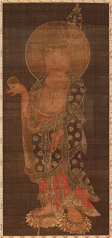 - 地蔵王菩薩像立軸 仏画 仏教美術 絹本 掛け物 仏堂 奉納 未表装