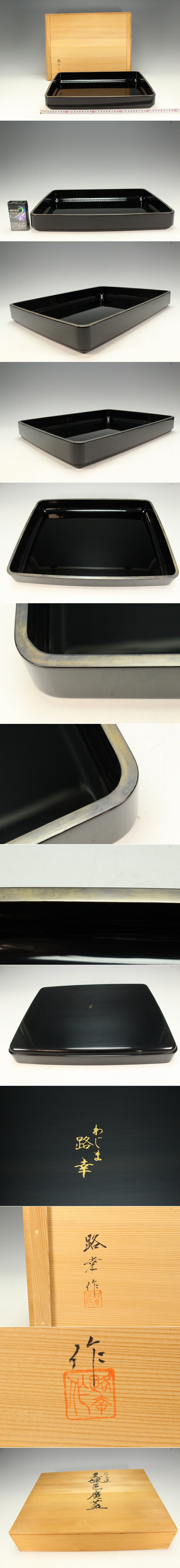 - 【金閣】輪島塗 漆塗 銀縁 盆 路幸作 共箱 煎茶 高級盆 旧家蔵出 送料無料(ZE381)