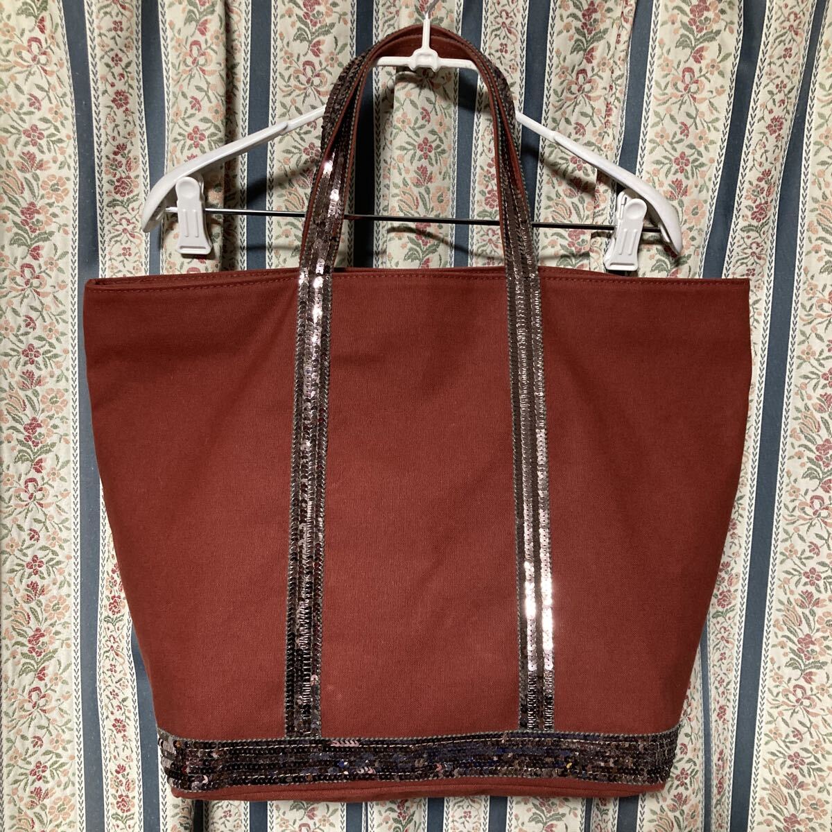 - vanessabruno ヴァネッサブリューノ スパンコール ハンドル キャンバス トートバッグ L 渋赤×ピンク レッド バネッサ A4対応