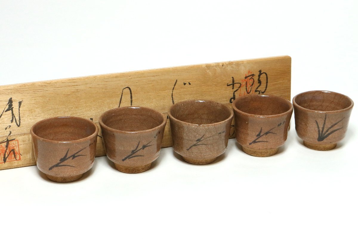 ・小山路窯 江口勝美 ぐい呑み 五客揃 共箱 /酒器 酒杯 盃 絵唐津