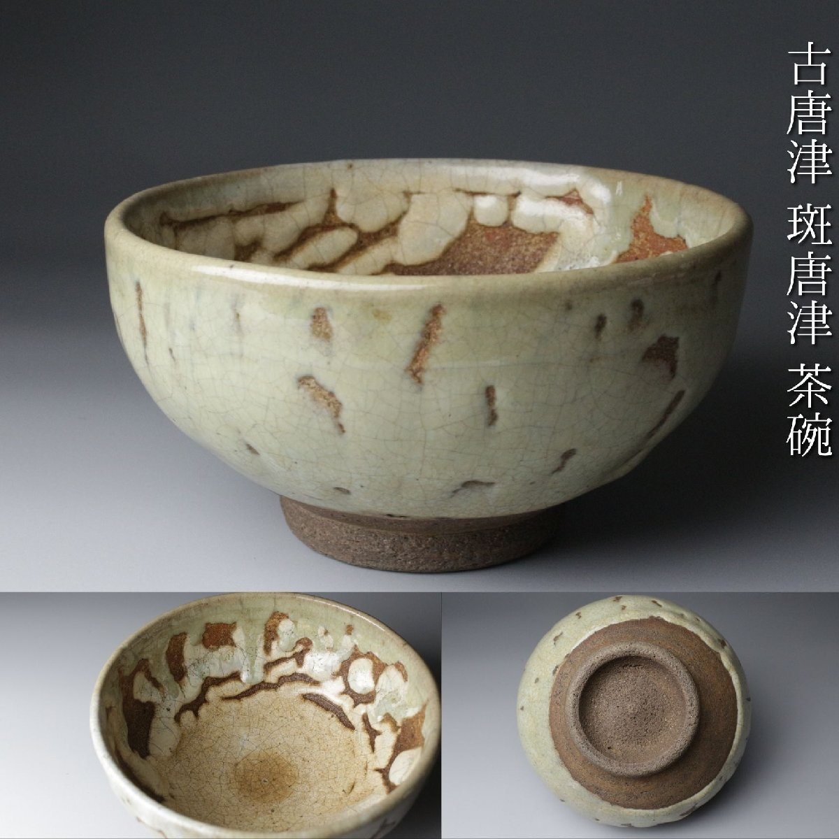 - 【LIG】見事な見込みの景色 古唐津 斑唐津 茶碗 茶器 茶碗 古美術品 コレクター収蔵品 [.WU]25.10