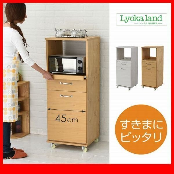 > レンジ台★スリム キッチンラック ペールワゴンタイプ H120cm/レンジ台 家電収納 ダストボックス/キャスター付/ナチュラル 白/FLLA-0069/zz