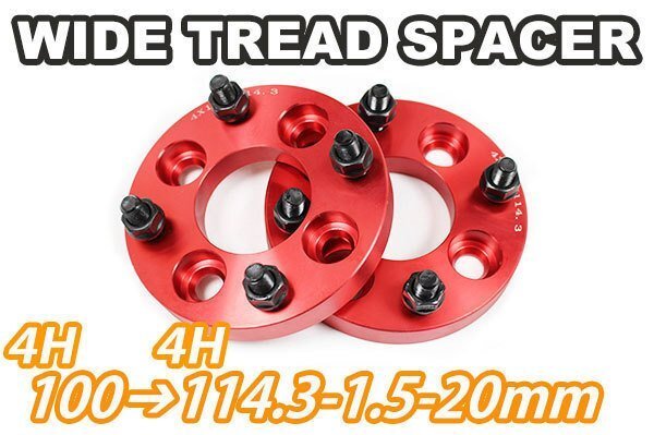 - 4H100114.3変換 ワイドトレッドスペーサー 2枚組 1.5 20mm 赤