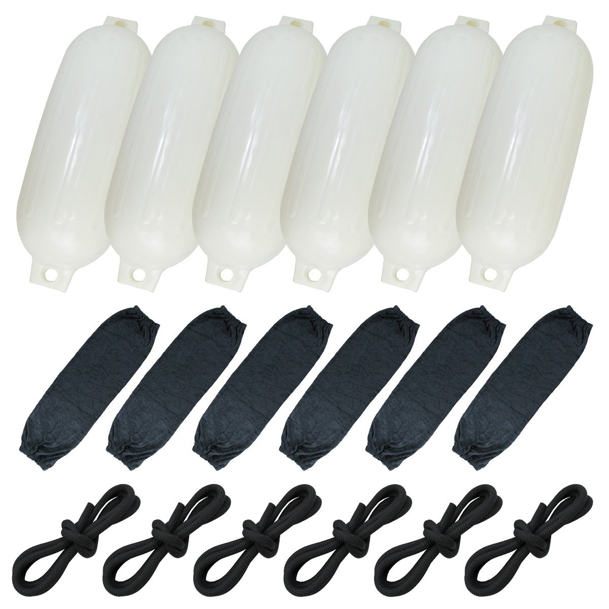 - 『3種×6セット』ボートフェンダー 580×190mm&黒カバー&ロープ 黒 2m 船 浮き ブイ フロート 係留ロープ